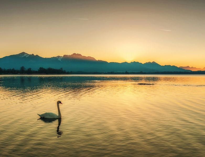 Der Chiemsee ist ein See im deutschen Bundesland Bayern. Die Herreninsel, die größte der im See gelegenen Inseln, ist von Wanderwegen durchzogen. Auf der Insel steht das unvollendete Neue Schloss Herrenchiemsee, das von König Ludwig II.